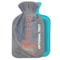 Personalised Hot Water Bottle Cover featuring your personalisation on a British-made premium fleece cover. Free 2L rubber bottle included.